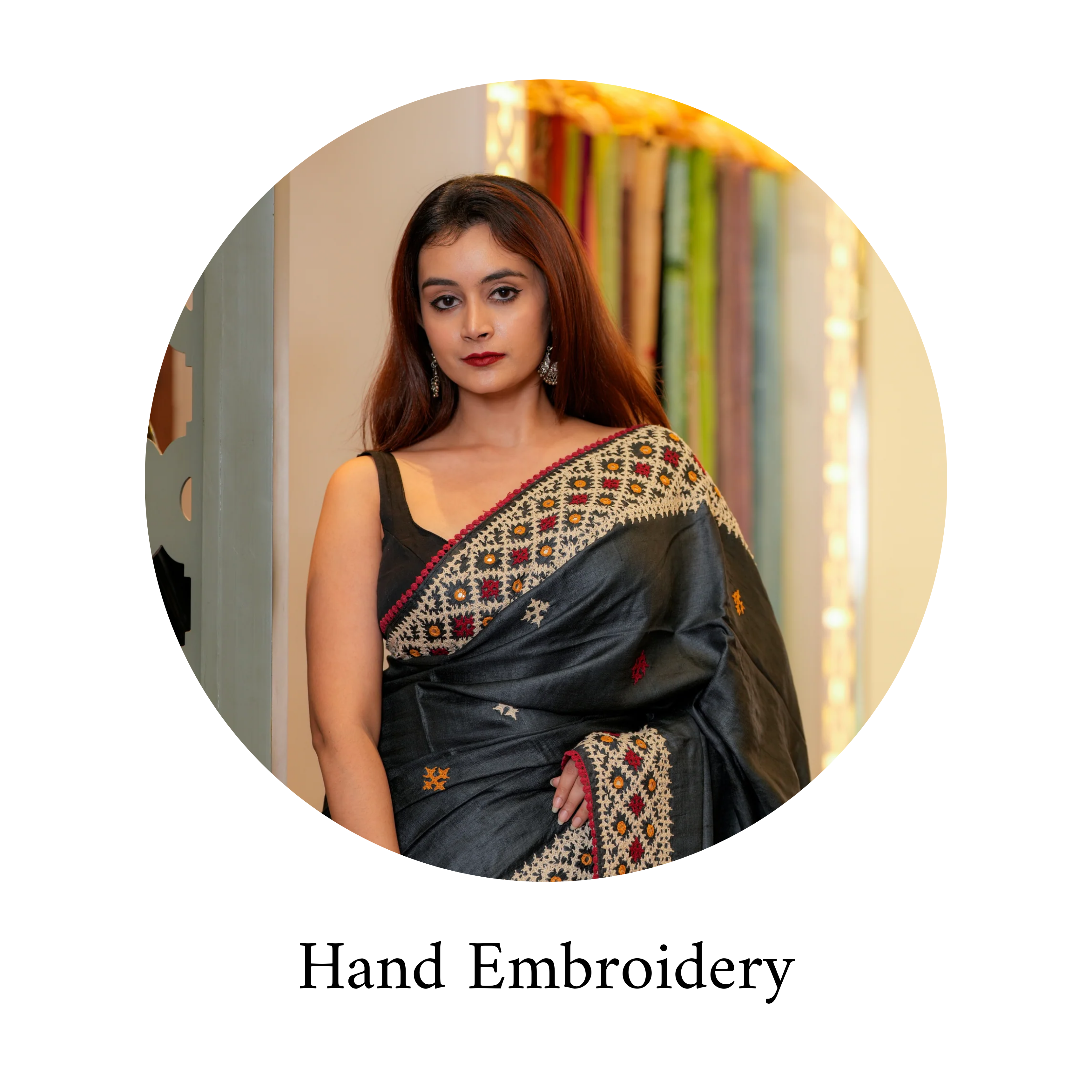 Ebony Dreams: Artisan Embroidery on Textured Tussar Silk