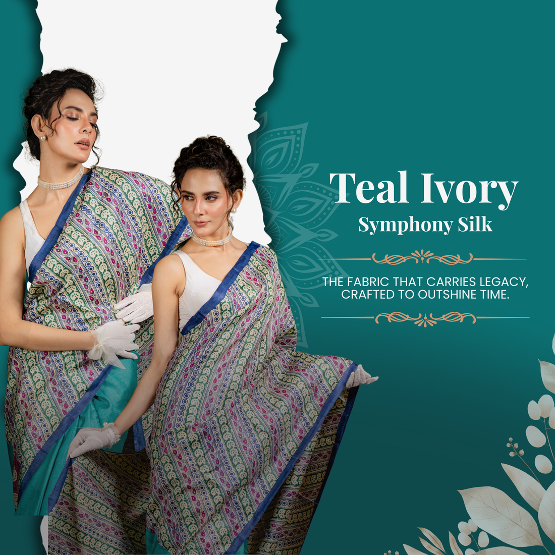 Teal Matsya Hand Block Print Saree: A Wave of Contemporary Tradition
