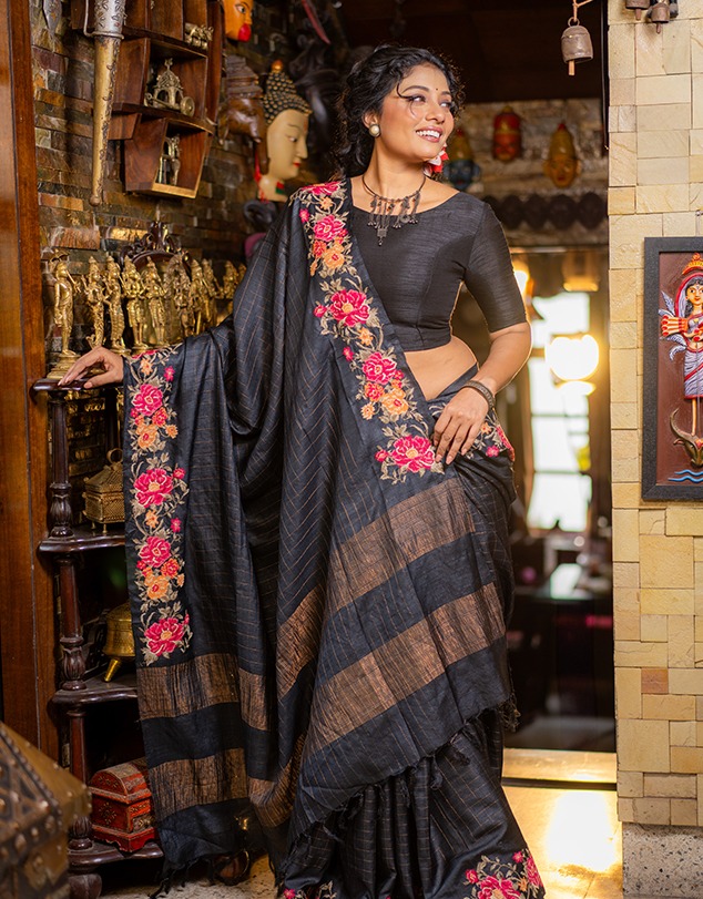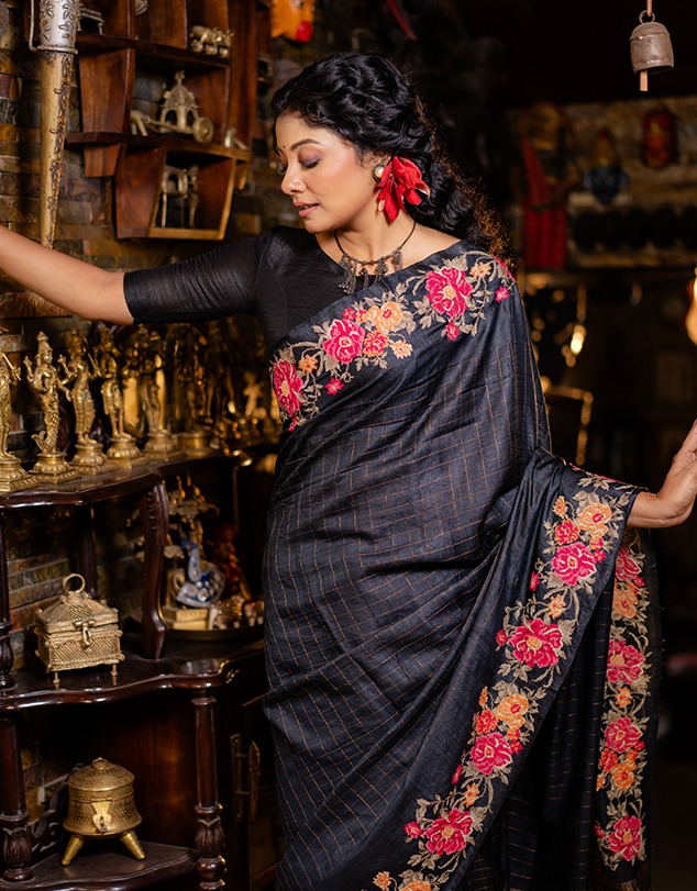 Embroidery Work on Tussar - Aytrika's Women Attire